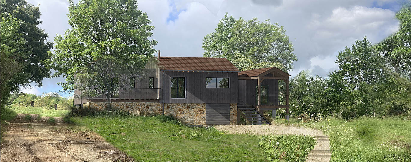 M. et Mme GROLHIER me confient la conception de leur maison habitation après celle de l’aménagement de la parcelle voisine, ici.